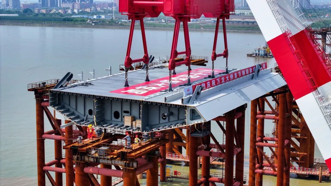 4月29日,随着一台1200吨大型浮吊的成功起吊,世界最大跨度自锚式悬索桥——南沙万龙大桥项目长36米、宽20.75米、高4米,重达606.6吨的首节钢箱梁成功精准落位。这一关键性进展标志着这座由南沙建设中心组织实施建设、中铁第四勘察设计院集团有限公司设计、中国铁建大桥局施工的世界级大桥正式从基础施工转入上部结构施工阶段,为项目如期合龙奠定坚实基础。